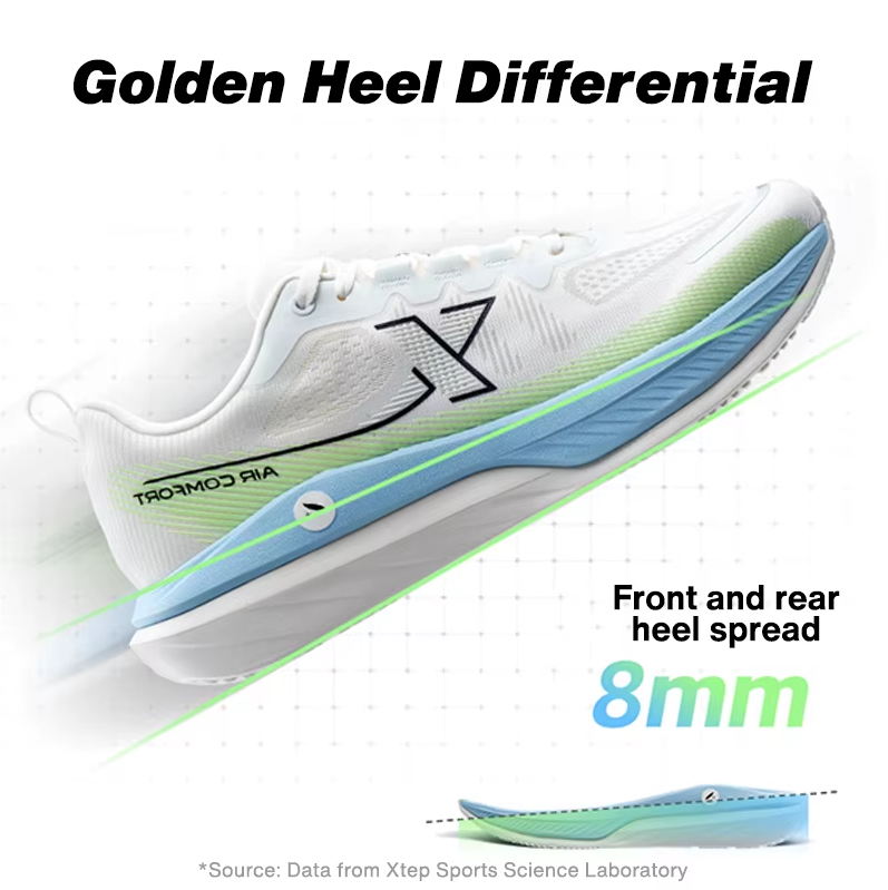 One common fear with thick-soled shoes is ankle instability. Xtep addresses this by widening the “platform” of the sole. By creating a larger base, the Xtep Cloud DC Running Shoes for Men provide a stable foundation that resists rolling, even when taking sharp corners or navigating uneven park paths.